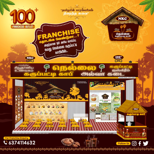 Description : Nellai Karupatti Coffee, also known as Thati Bellam Coffee, is a specialty coffee beverage made with natural palm jaggery and carefully selected coffee beans. Join our Karupatti Coffee franchise and bring this unique and delicious beverage to coffee lovers everywhere. |